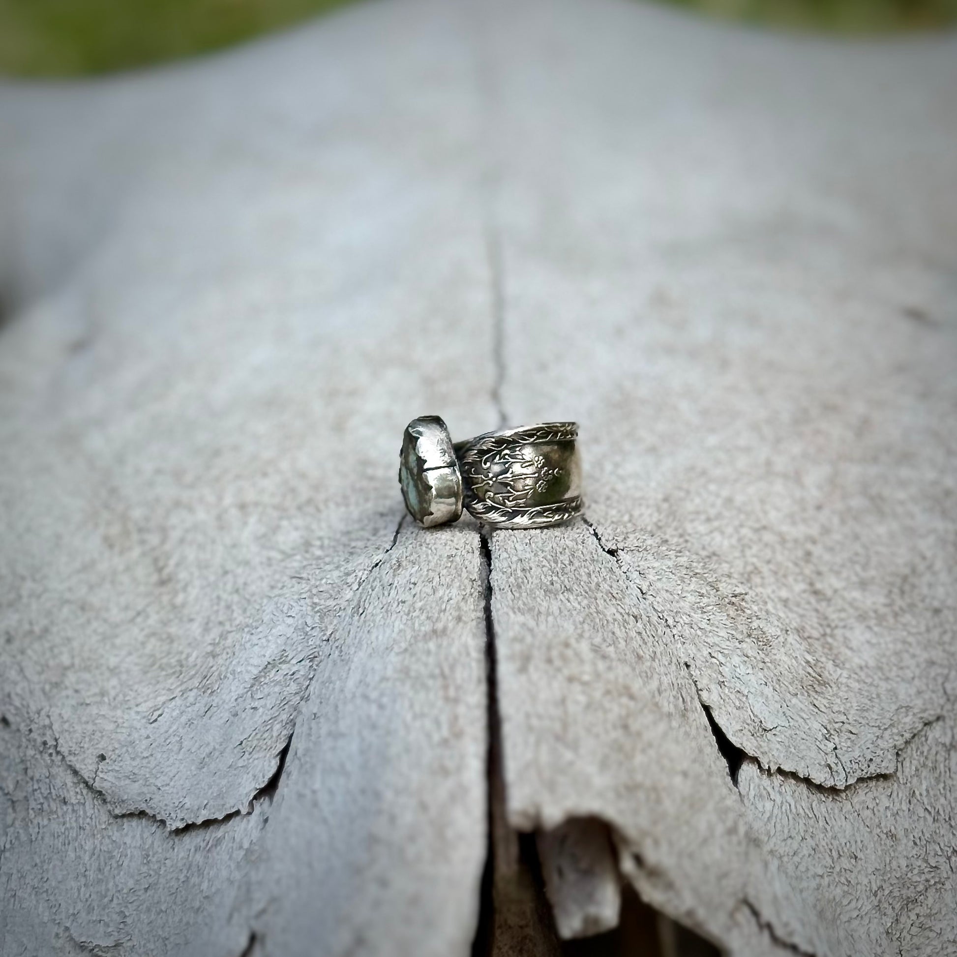 Hand fabricated using a vintage sterling silver baby spoon.