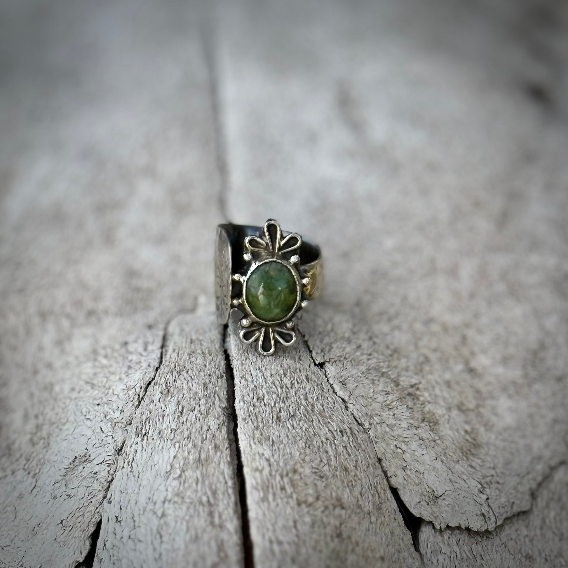 Hand fabricated using a vintage spoon and gorgeous nephrite jade from Wyoming.