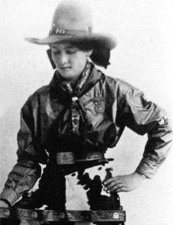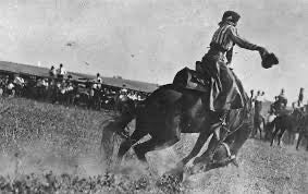 Named after the 1904 Montana Women's Bronc Riding Champion Fannie Sperry Steele. A born and raised Montana lady, she was bound a determined to live a colorful life. She was a bronc rider, rode in Wild West shows alongside Buffalo Bill Cody, and paved the way for many more young ladies who wanted to follow in her footsteps. There is many photos of Fannie spurring down some rank horses with her braids flying. She was a true Brassy woman.