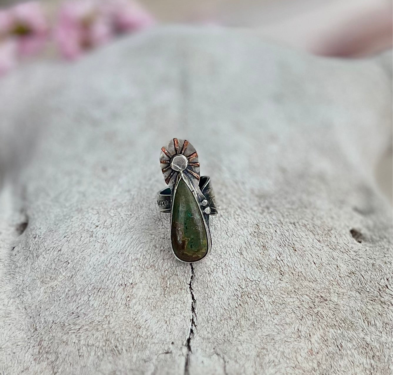 Sterling silver + Turquoise + Copper accents. Size 8.5