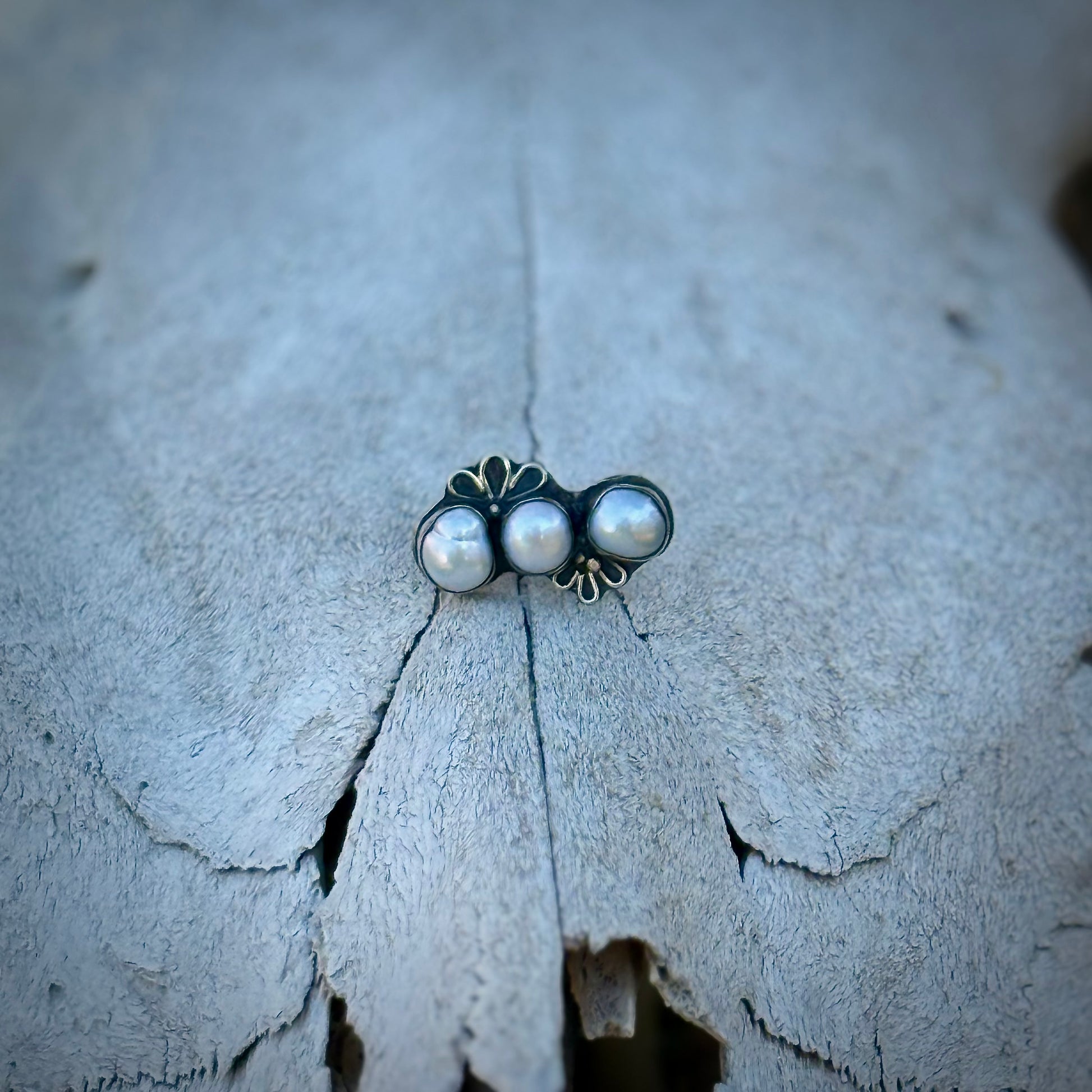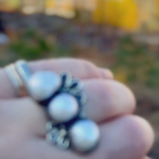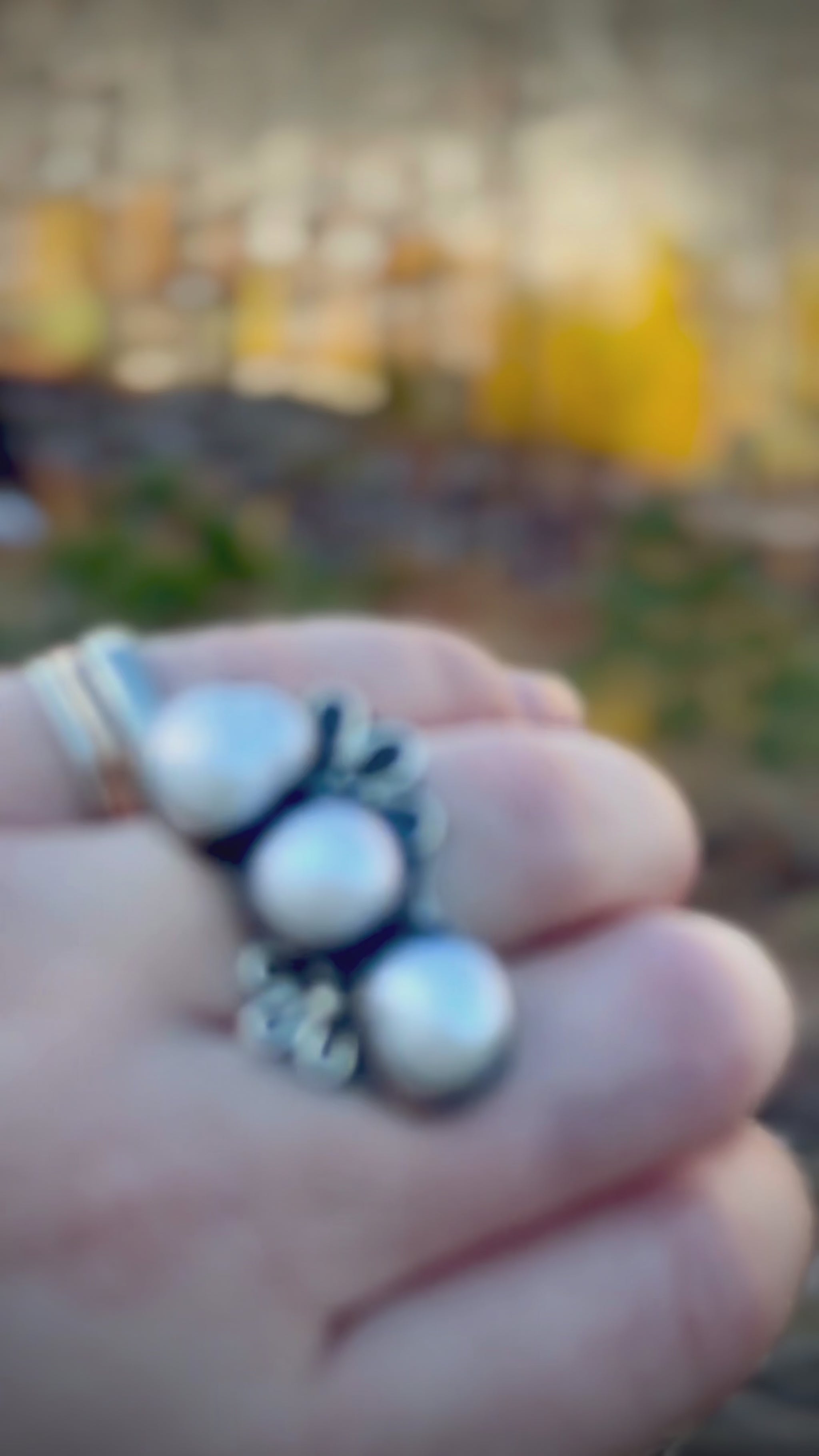 Named after the one and only Lorrie Darlin from my favorite movie of ALL time. she is tenacious and tough in a womanly way, similar to how the pearls are dainty in comparison to the harshness of the silver in this piece.
