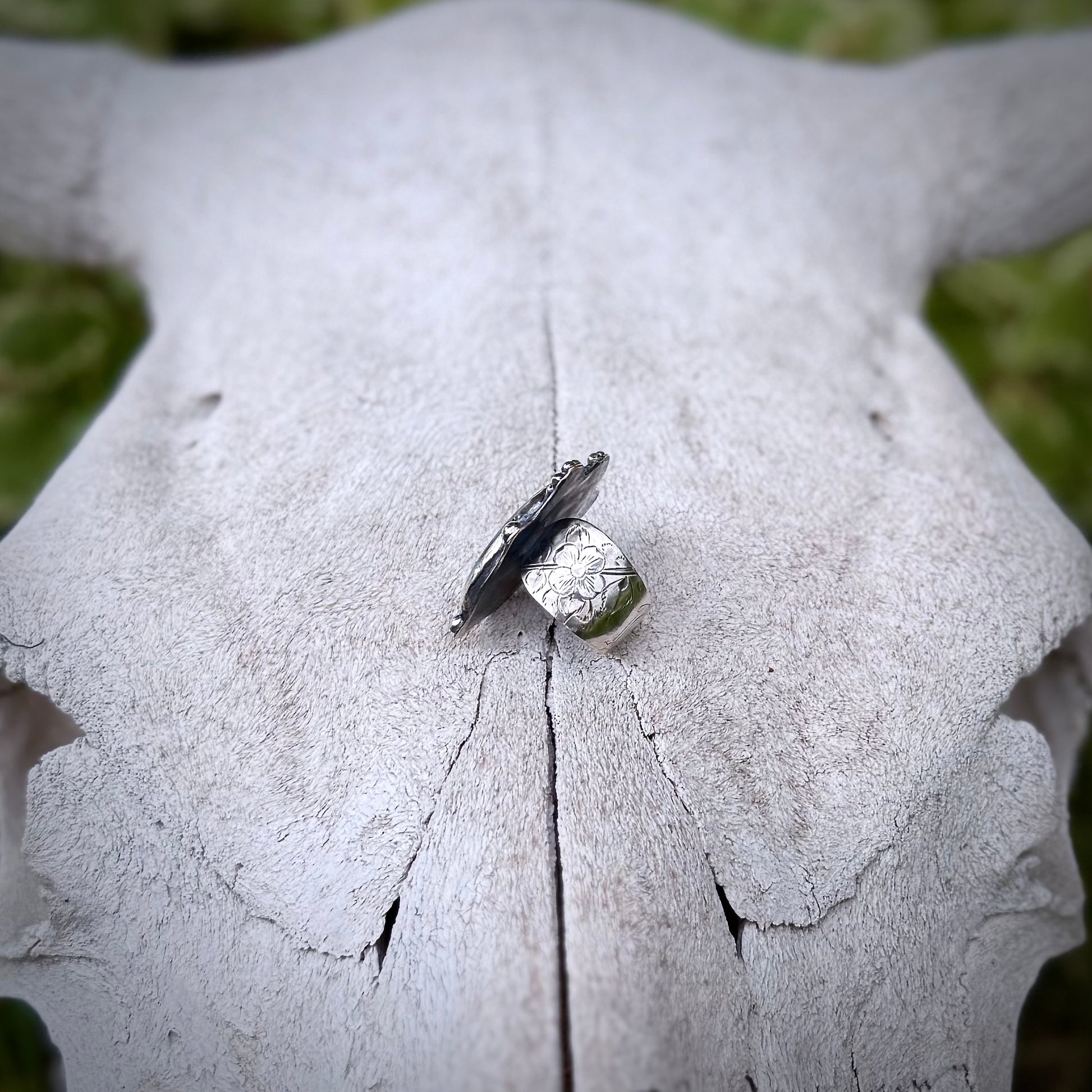 Hand fabricated using a vintage sterling soup spoon. The perfect piece to make a statement with.
